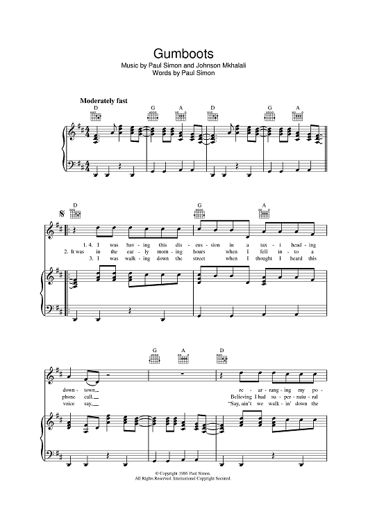 Digital Sheet Music for Gumboots by Paul Simon, Lulu Masilela, Johnson Mkhalali scored for Piano/Vocal/Chords; id:390713