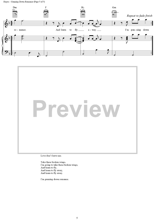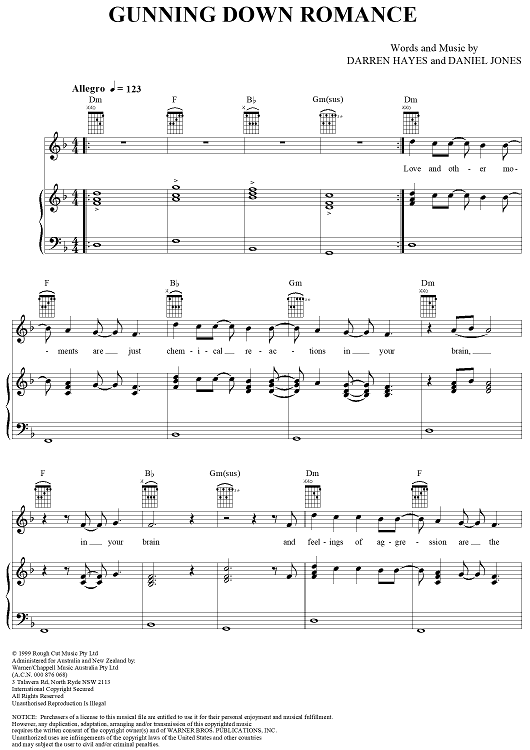 Digital Sheet Music for Gunning Down Romance by Darren Hayes, Daniel Jones, Savage Garden scored for Piano/Vocal/Chords; id:267176