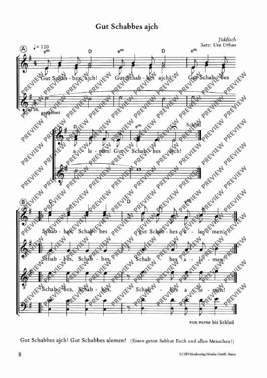 Digital Sheet Music for Gut Schabbes ajch by Uve Urban scored for Mixed Choir (satb) A Cappella; Instruments Ad Libitum; id:500210