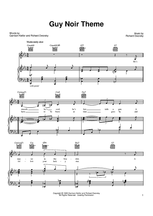 Digital Sheet Music for Guy Noir Theme by Richard Dworsky, Garrison Keillor scored for Piano/Vocal/Chords; id:381415