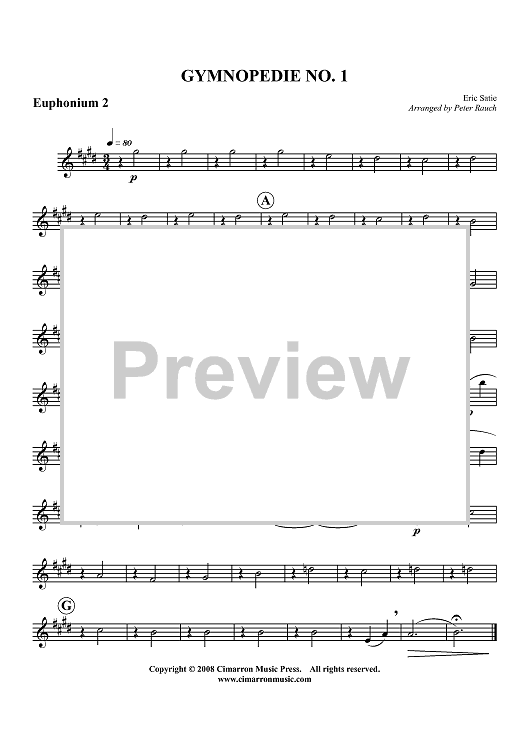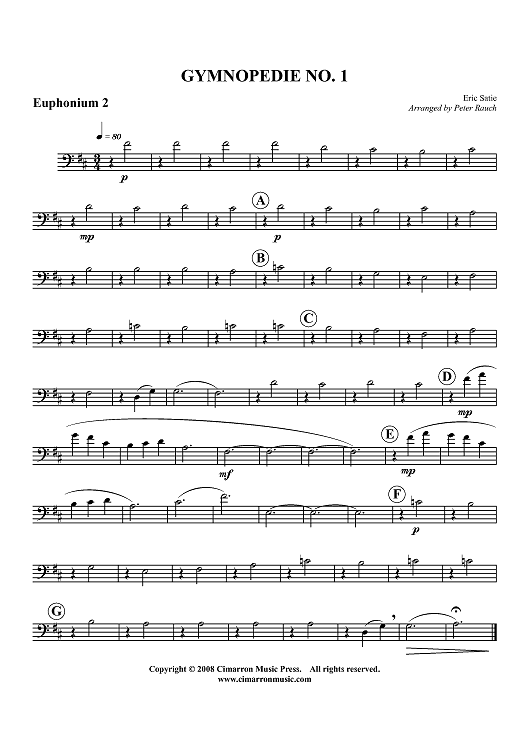 "Gymnopedie No. 1 - Euphonium 2 BC/TC" Sheet Music by Erik Satie