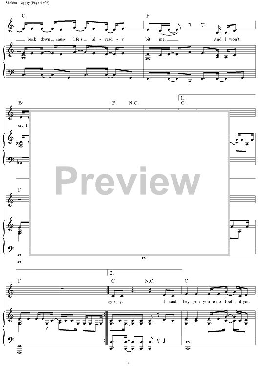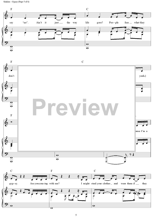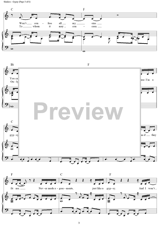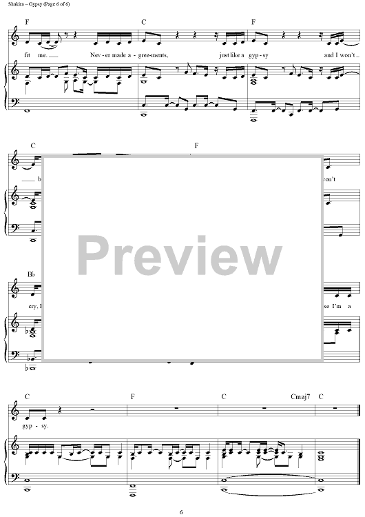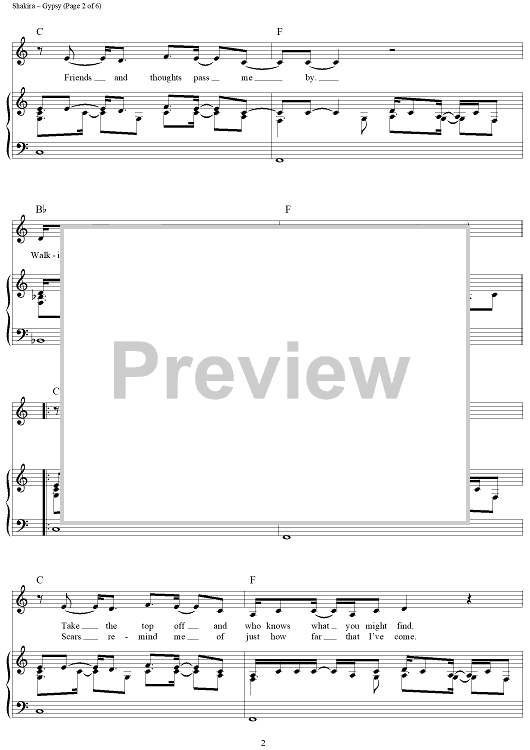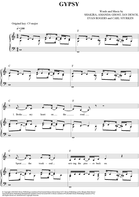 Digital Sheet Music for Gypsy by Evan Rogers, Carl Sturken, Shakira, Amanda Ghost, Ian Dench scored for Piano/Vocal/Chords; id:411412