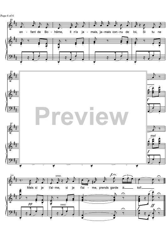 Digital Sheet Music for Habanera from Carmen by Georges Bizet, SMN Archive Collection scored for Mezzo-soprano/Piano; id:323885