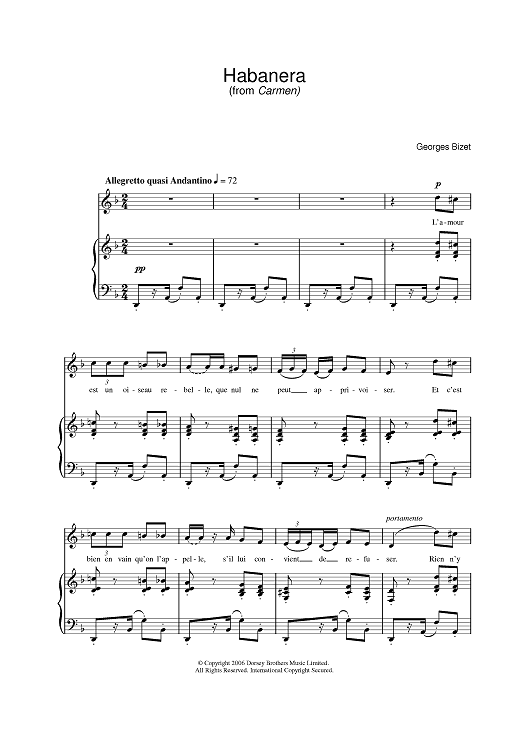 Digital Sheet Music for Habanera (from Carmen) by Georges Bizet scored for Piano/Vocal/Chords; id:389324
