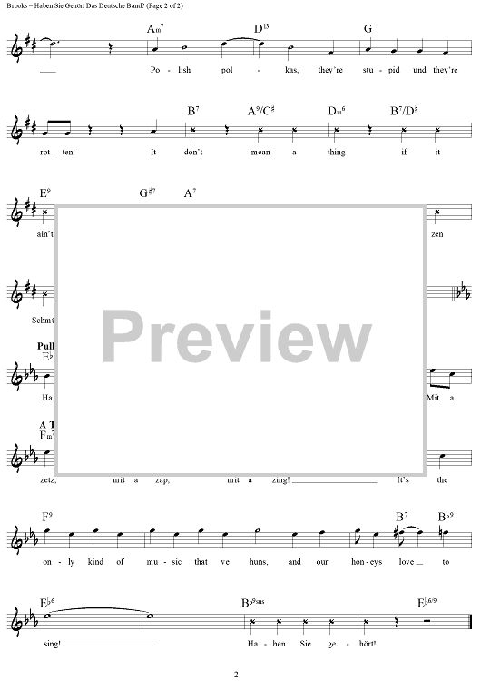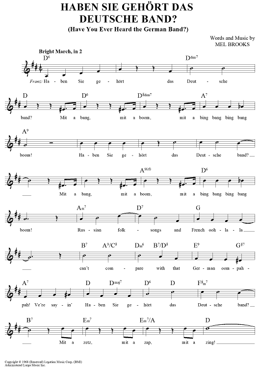 Digital Sheet Music for Haben Sie Gehört Das Deutsche Band? (Have You Ever Heard the German Band?) by Mel Brooks scored for Lead Sheet; id:457263