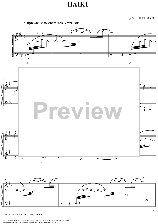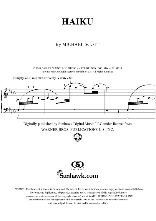 Digital Sheet Music for Haiku by Michael Scott scored for Piano Solo; id:287365