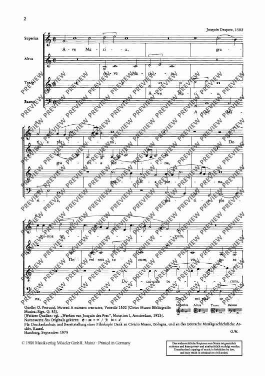 "Hail Mary, full of grace - Choral Score" Sheet Music by Josquin des Préz