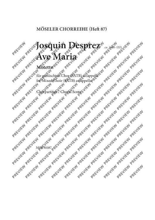 Digital Sheet Music for Hail Mary, full of grace - Choral Score by Josquin des Préz scored for Mixed Choir (satb); id:502987