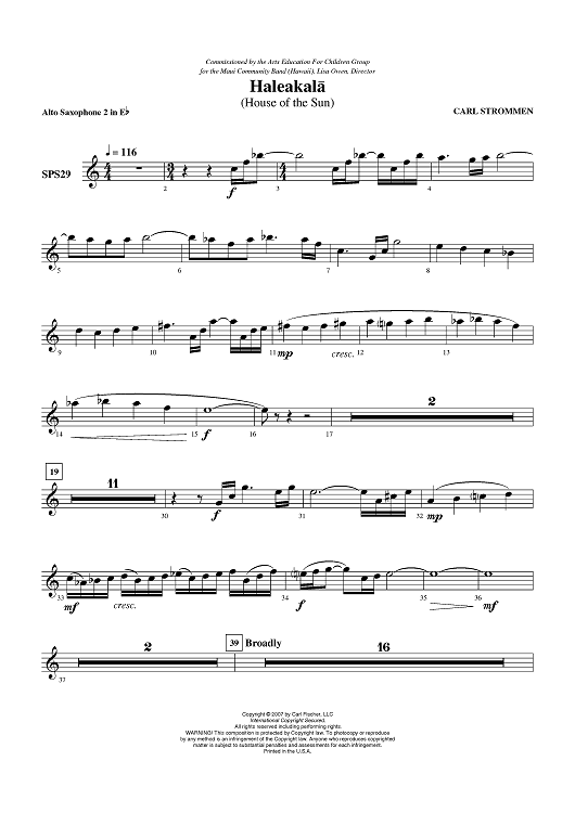 Digital Sheet Music for Haleakala - Alto Sax 2 by Carl Strommen scored for Concert Band; id:407615