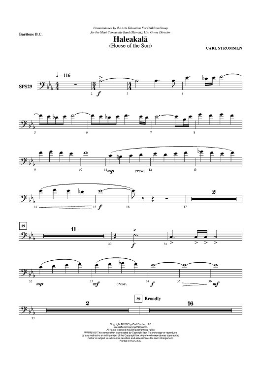 Digital Sheet Music for Haleakala - Baritone (Bass Clef) by Carl Strommen scored for Concert Band; id:407629