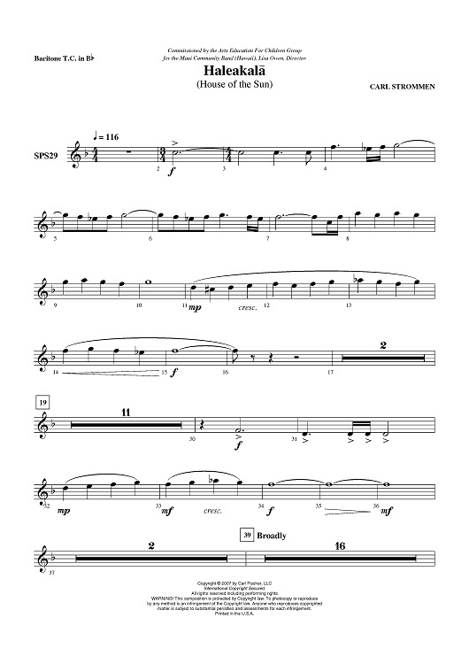 Digital Sheet Music for Haleakala - Baritone TC by Carl Strommen scored for Concert Band; id:407628