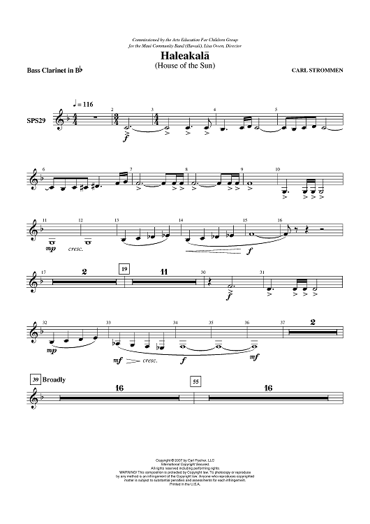 Digital Sheet Music for Haleakala - Bass Clarinet in B-flat by Carl Strommen scored for Concert Band; id:407612