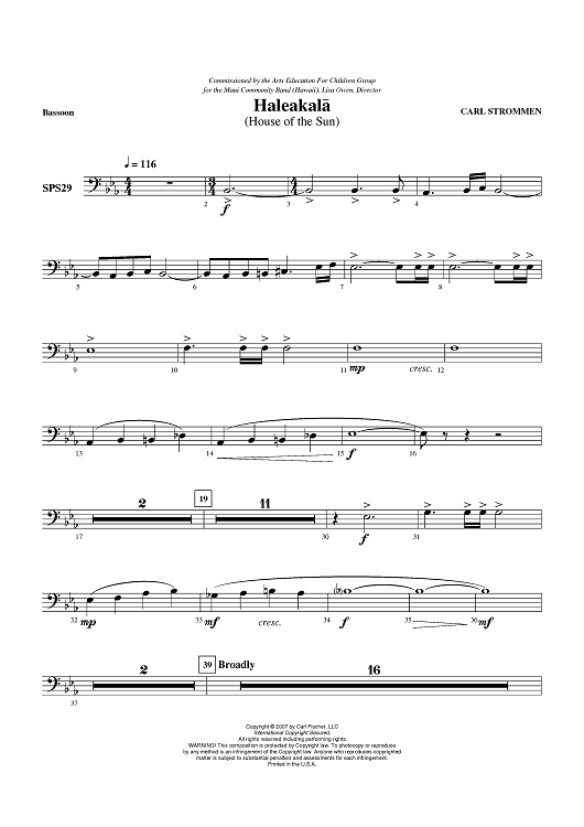 "Haleakala - Bassoon" Sheet Music by Carl Strommen