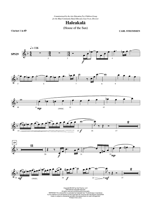 Digital Sheet Music for Haleakala - Clarinet 1 in B-flat by Carl Strommen scored for Concert Band; id:407609