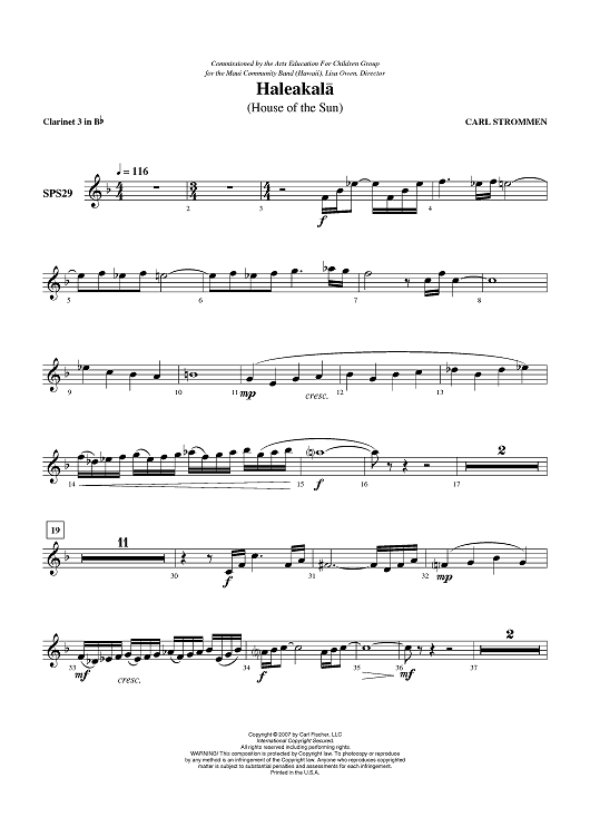 Digital Sheet Music for Haleakala - Clarinet 3 in B-flat by Carl Strommen scored for Concert Band; id:407611