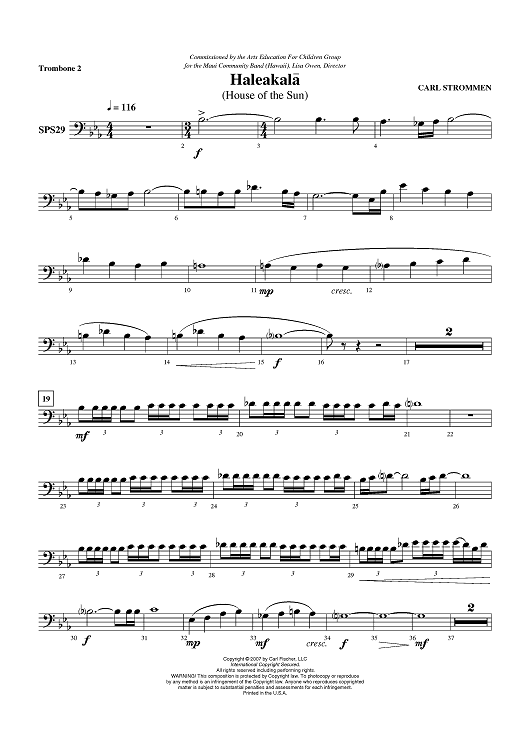 "Haleakala - Trombone 2" Sheet Music by Carl Strommen