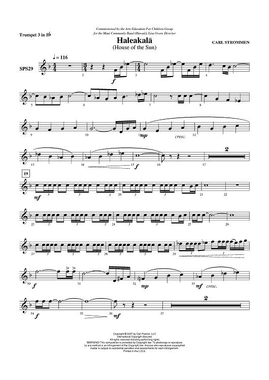 Digital Sheet Music for Haleakala - Trumpet 3 in B-flat by Carl Strommen scored for Concert Band; id:407620