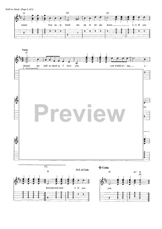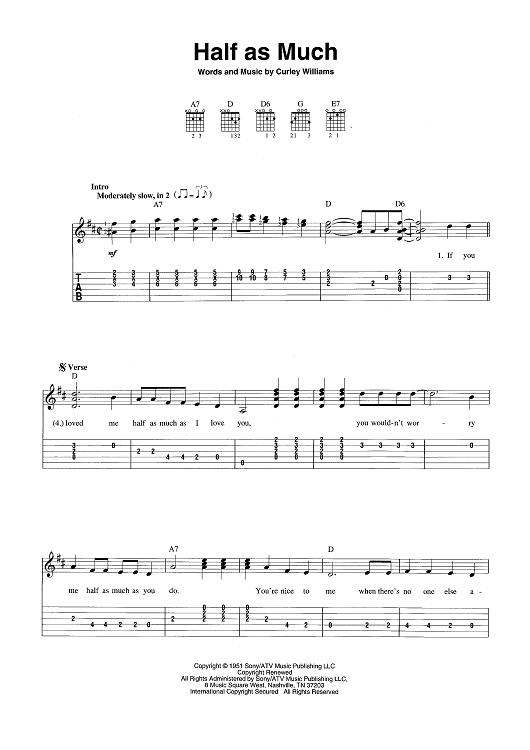 Digital Sheet Music for Half as Much by Hank Williams, Curley Williams scored for Easy Guitar Tab/Vocal/Chords; id:456725