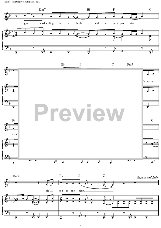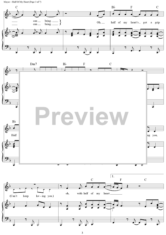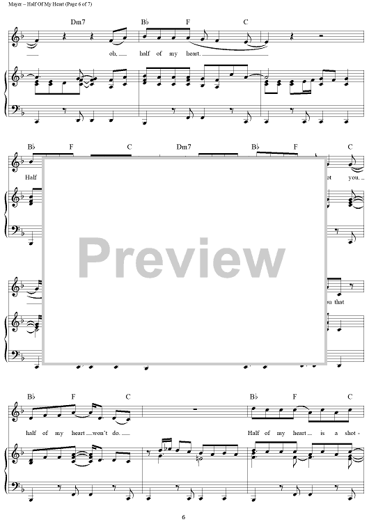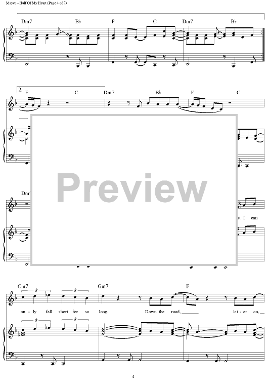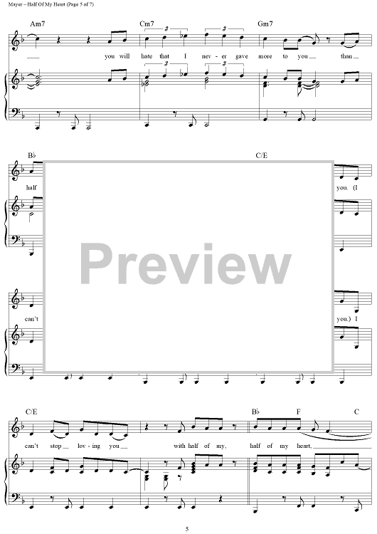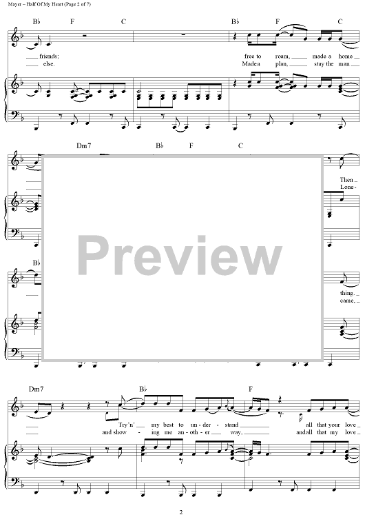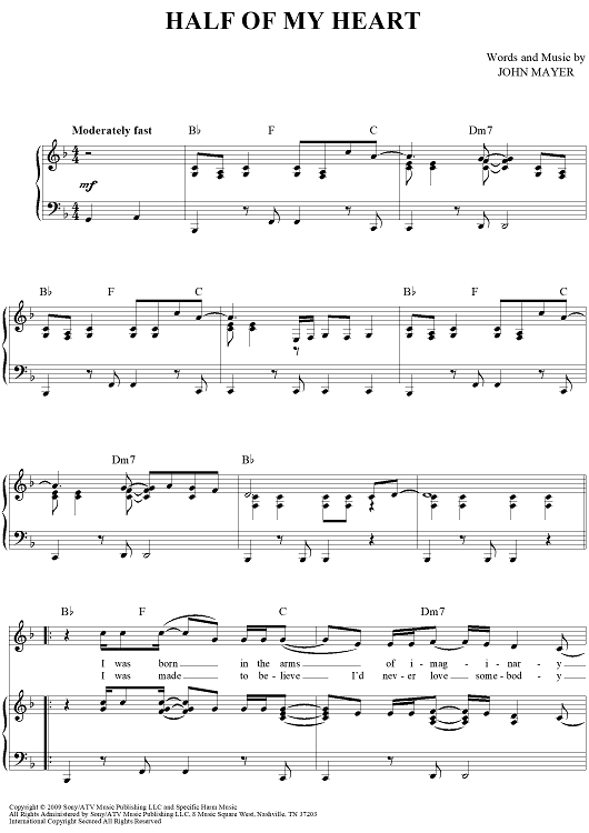 Digital Sheet Music for Half Of My Heart by John Mayer scored for Piano/Vocal/Chords; id:410128