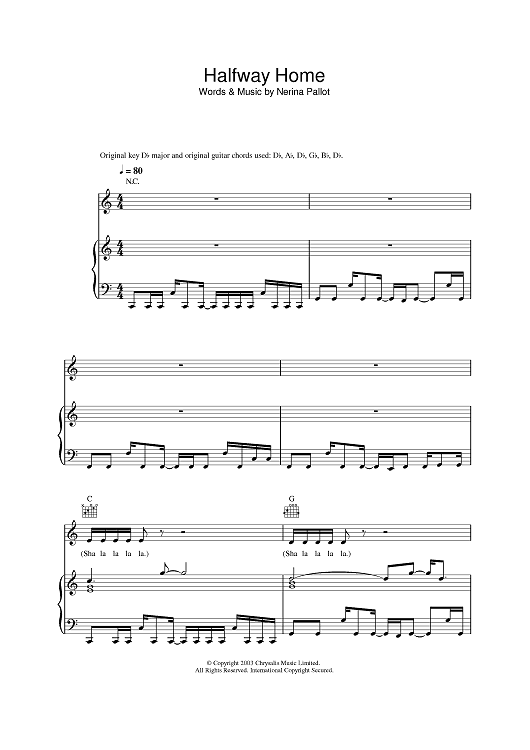 Digital Sheet Music for Halfway Home by Nerina Pallot scored for Piano/Vocal/Chords; id:392409