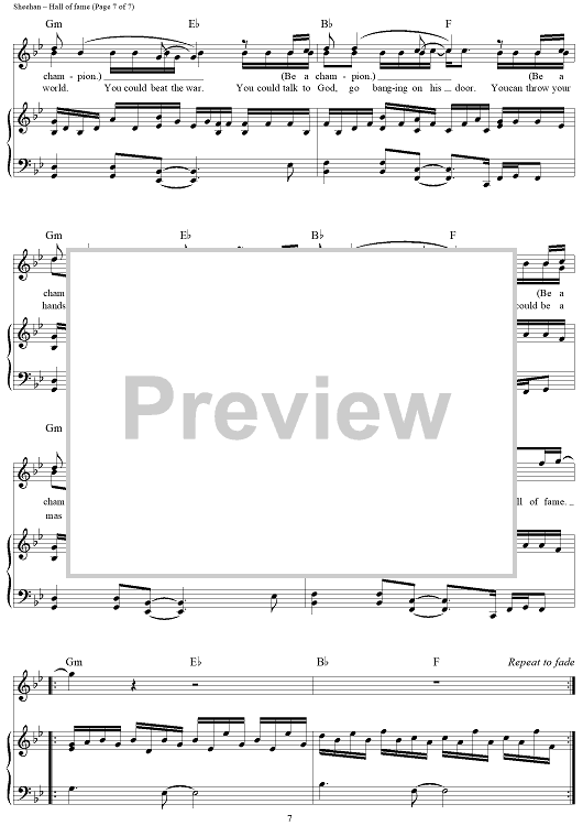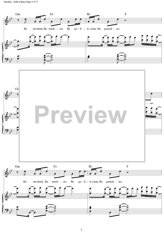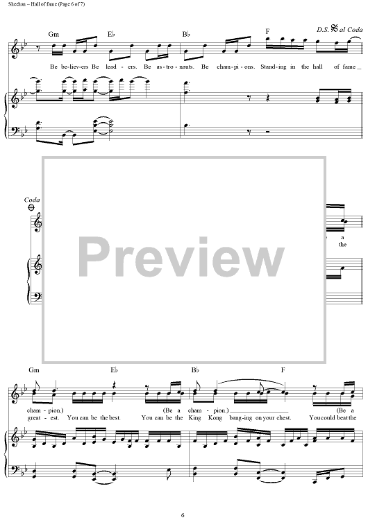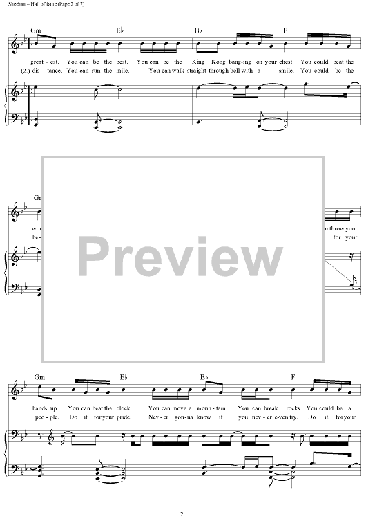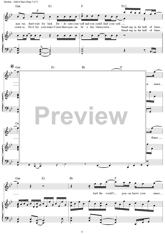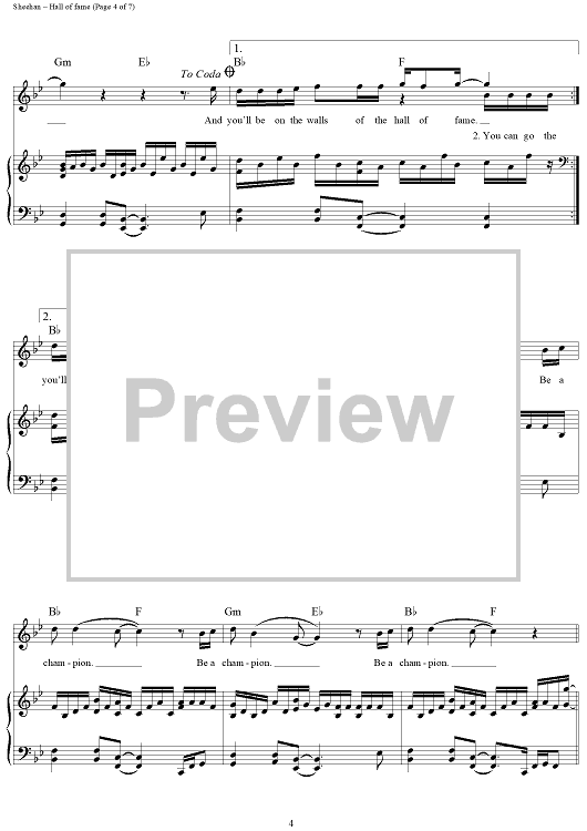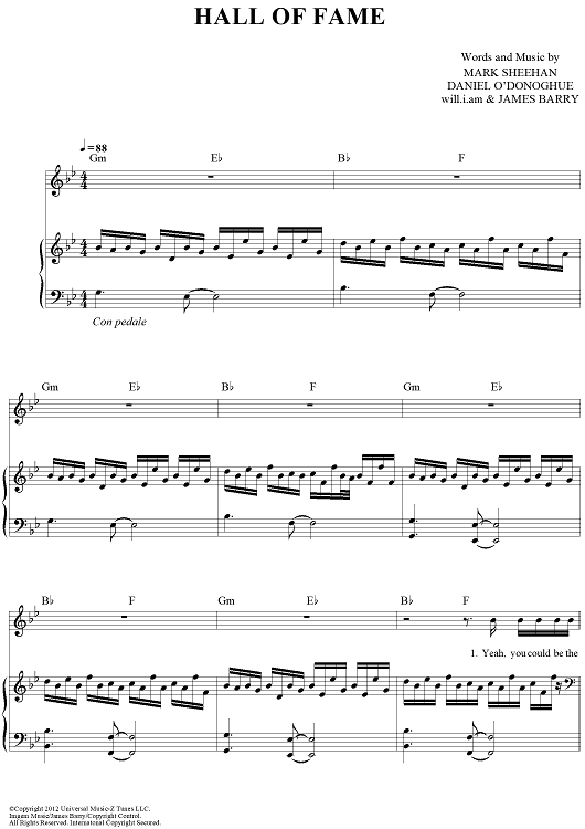 Digital Sheet Music for Hall Of Fame by will.i.am, The Script, Mark Sheehan, Daniel O'Donoghue, James Barry scored for Piano/Vocal/Chords; id:433770