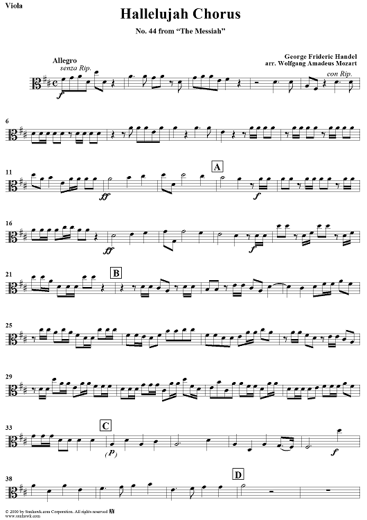 Digital Sheet Music for Hallelujah Chorus - Viola by George Frideric Handel, Wolfgang Amadeus Mozart scored for Chorus and Orchestra; id:168429