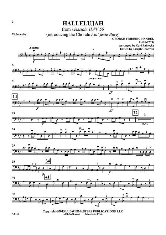 Digital Sheet Music for Hallelujah - from "Messiah", HWV 56 (introducing the Chorale "Ein' feste Burg") - Violoncello by , George Frideric Handel, Carl Reinecke scored for Full Orchestra; id:464950