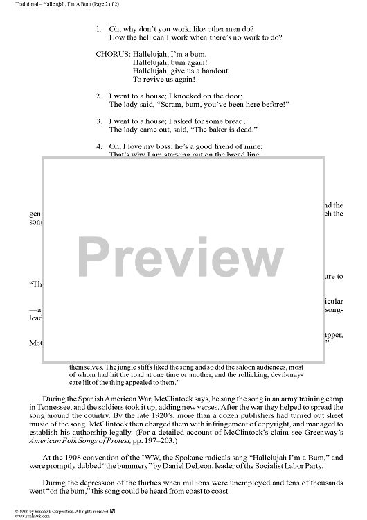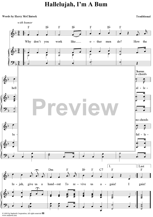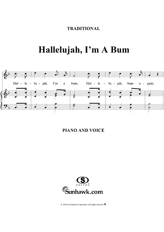"Hallelujah, I'm a Bum!" Sheet Music by Traditional