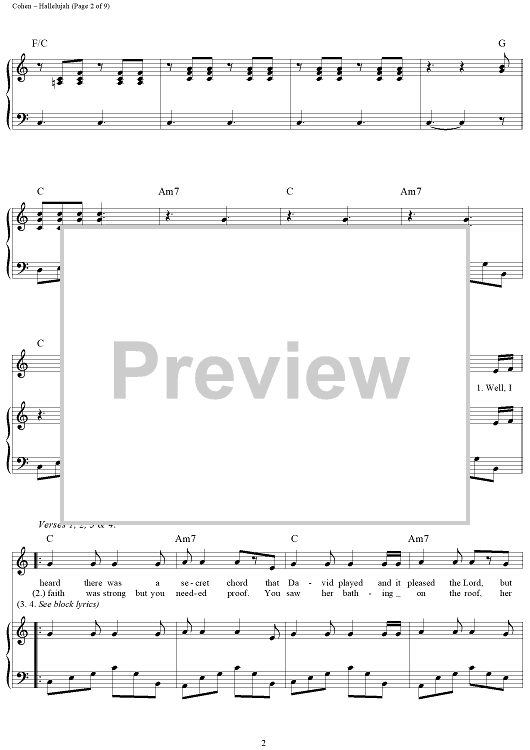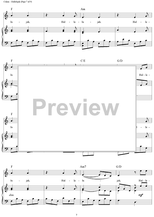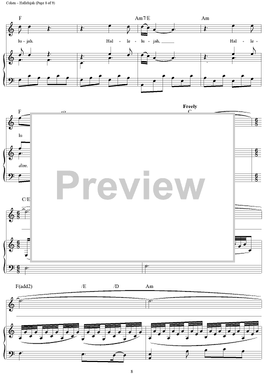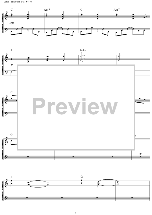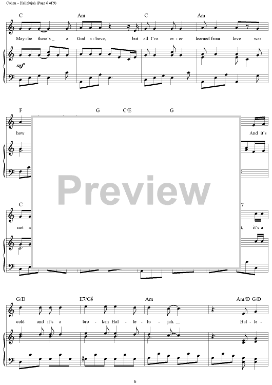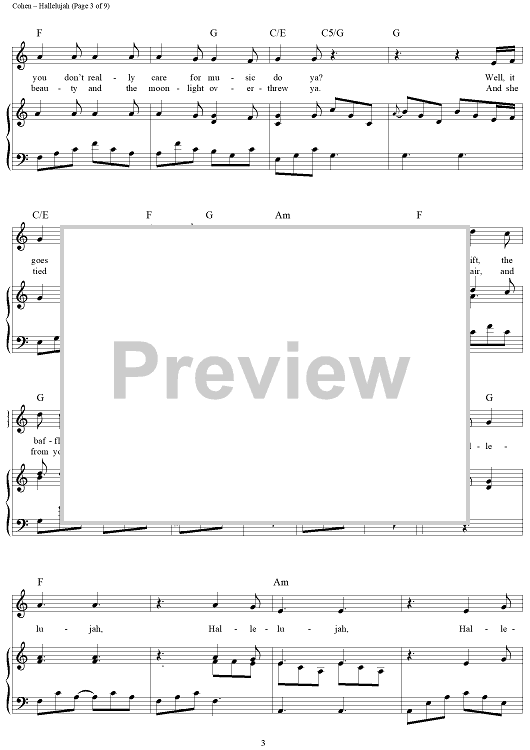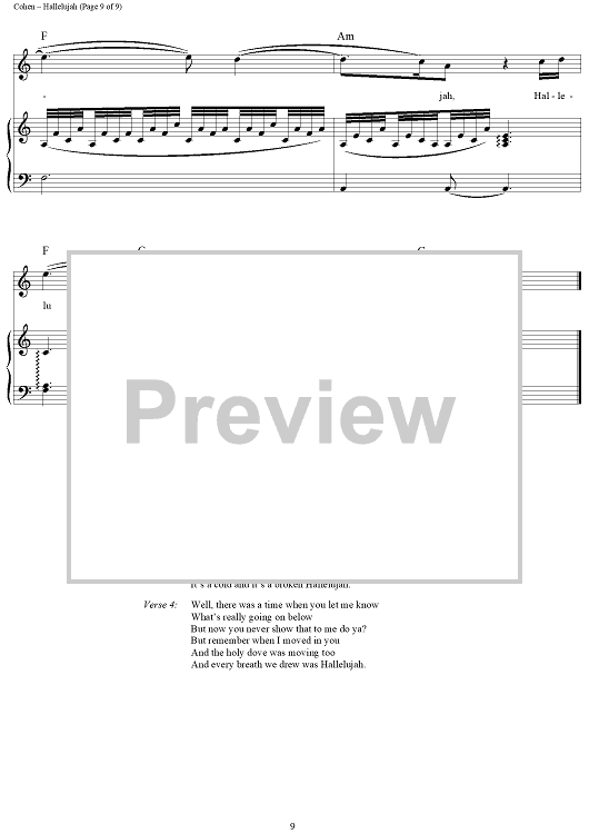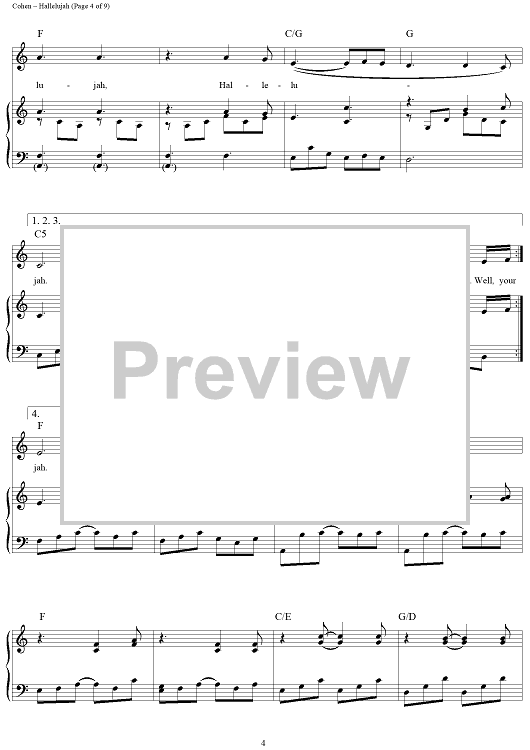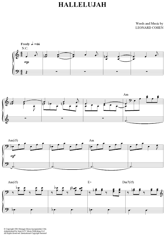 Digital Sheet Music for Hallelujah by Jeff Buckley, Leonard Cohen scored for Piano/Vocal/Chords; id:361982
