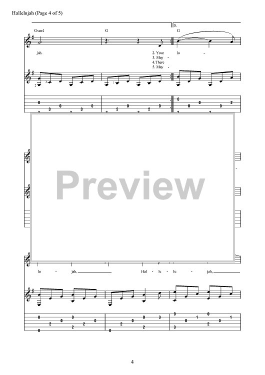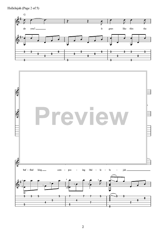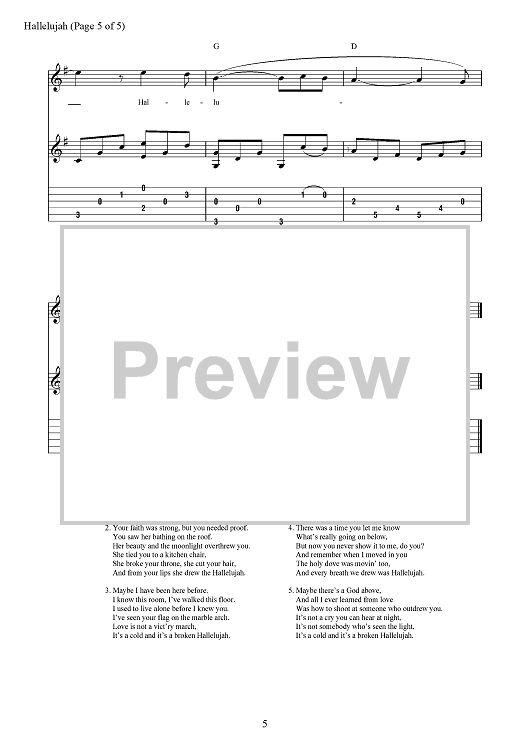 Digital Sheet Music for Hallelujah by Leonard Cohen scored for Guitar Tab/Vocal/Chords; id:442948