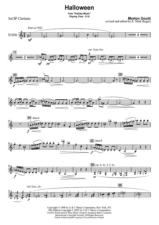 "Halloween - Bb Clarinet 3" Sheet Music by Morton Gould