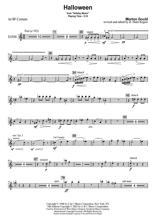 Digital Sheet Music for Halloween - Bb Cornet 1 by Morton Gould scored for Concert Band; id:502435