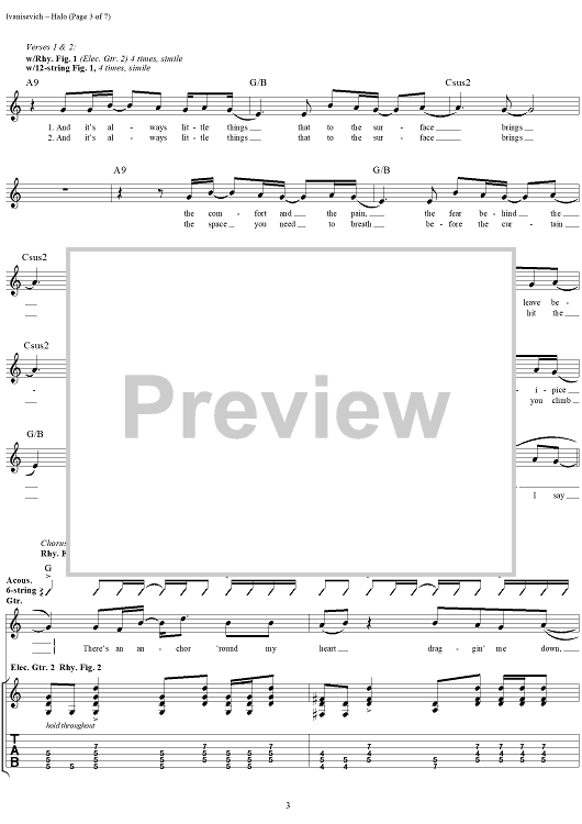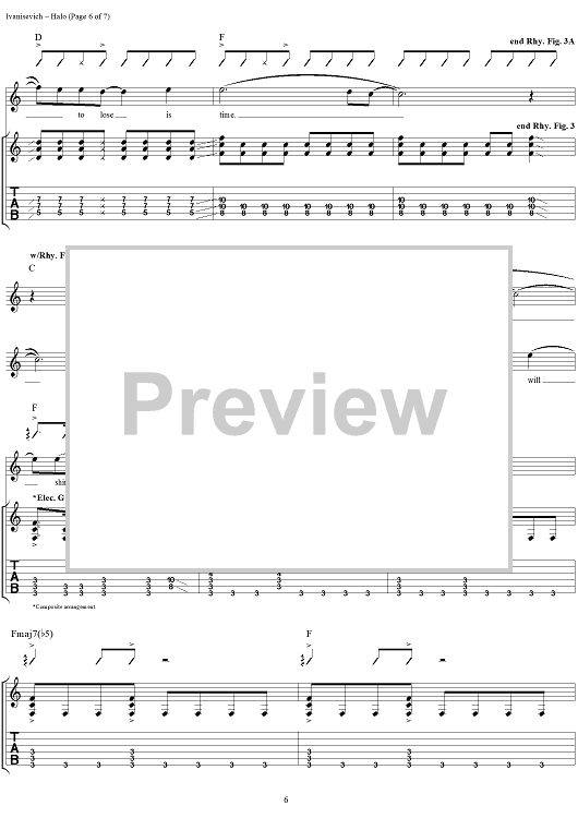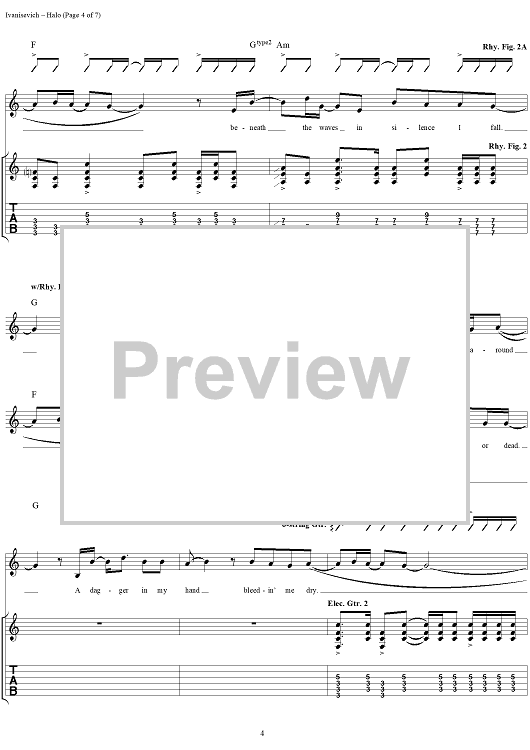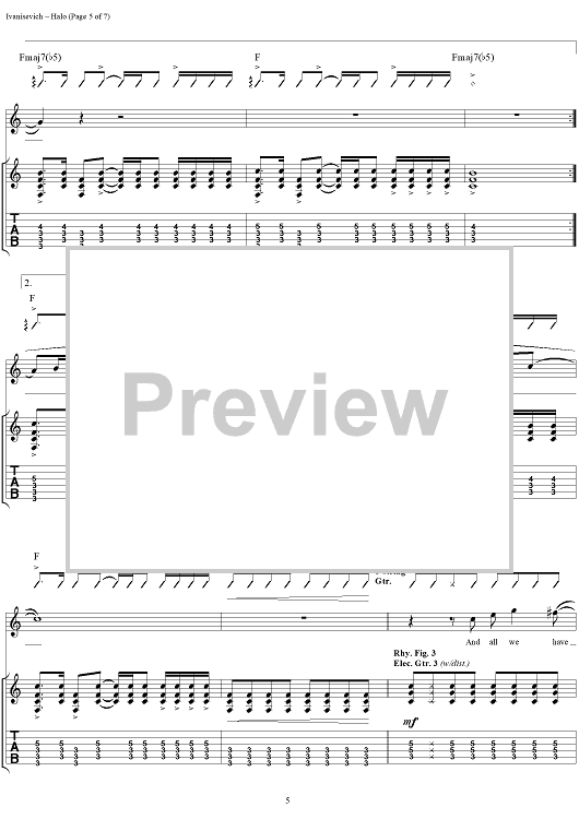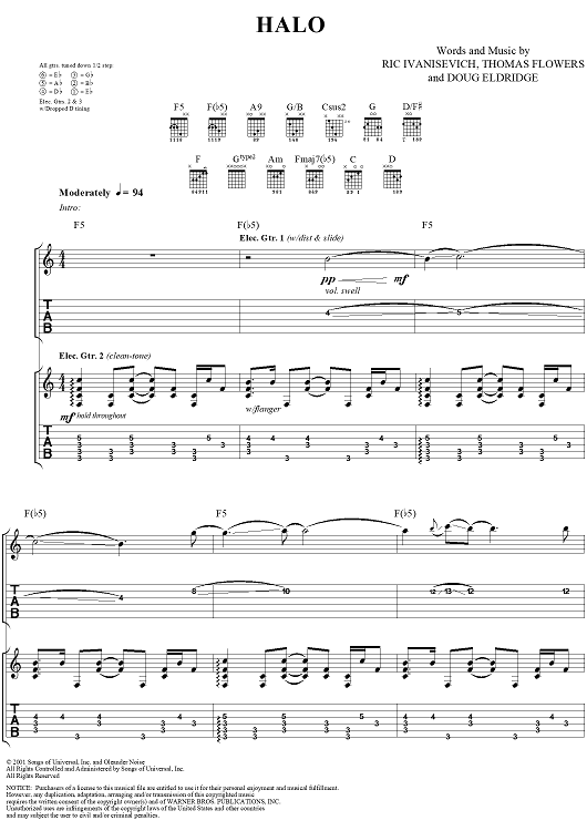 Digital Sheet Music for Halo by Oleander, Ric Ivanisevich, Thomas Flowers, Doug Eldridge scored for Guitar Tab/Vocal; id:285301