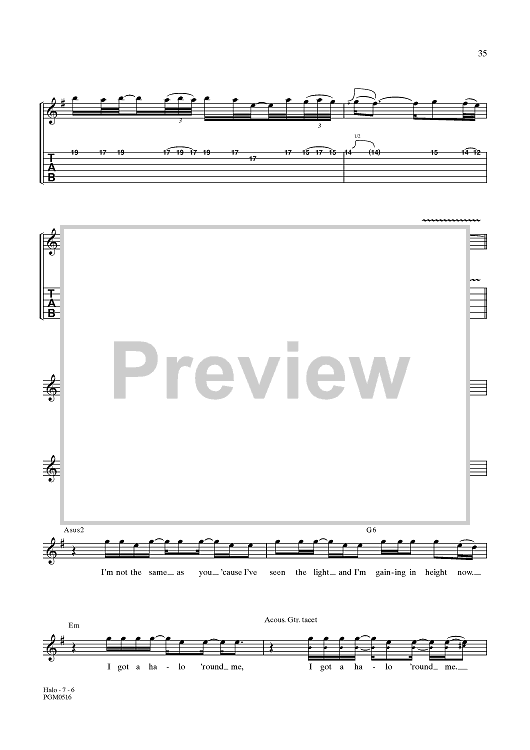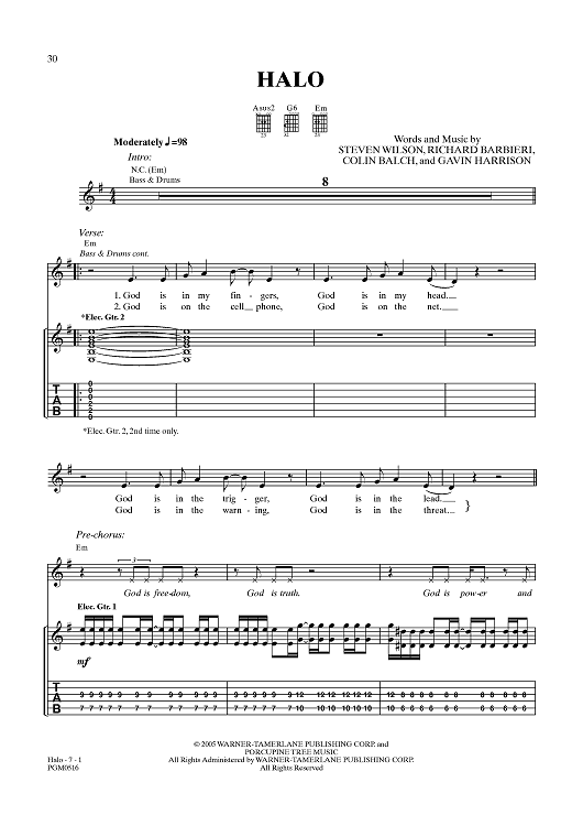 Digital Sheet Music for Halo by Porcupine Tree, Steven Wilson, Richard Barbieri, Colin Balch, Gavin Harrison scored for Guitar Tab/Vocal; id:360024