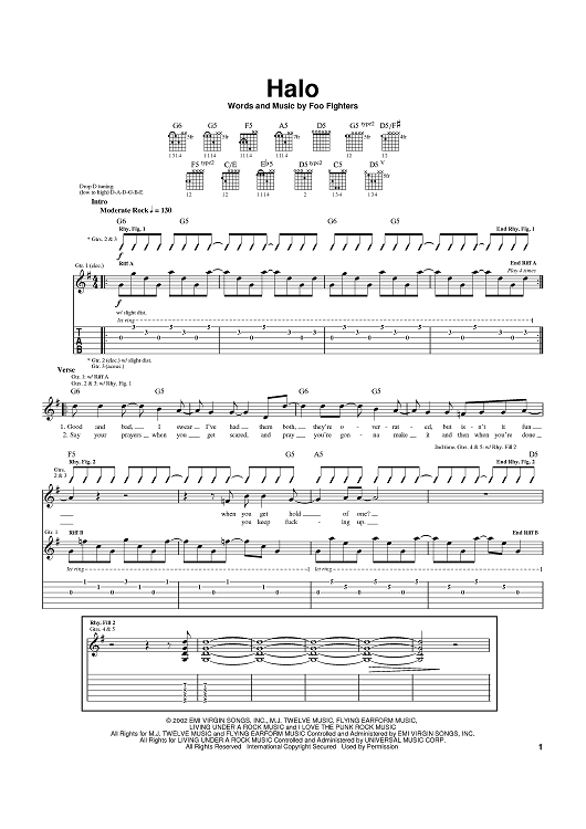Digital Sheet Music for Halo by Foo Fighters scored for Guitar Tab; id:371427