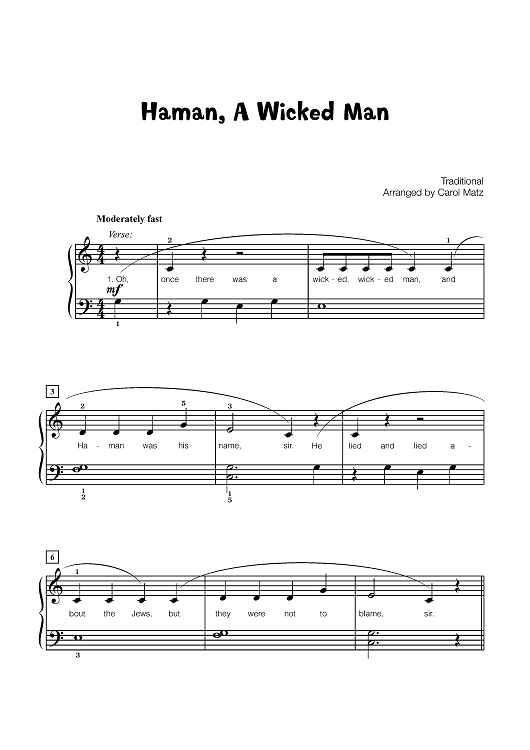 Digital Sheet Music for Haman, A Wicked Man by Carol Matz, Traditional scored for Piano; id:461294