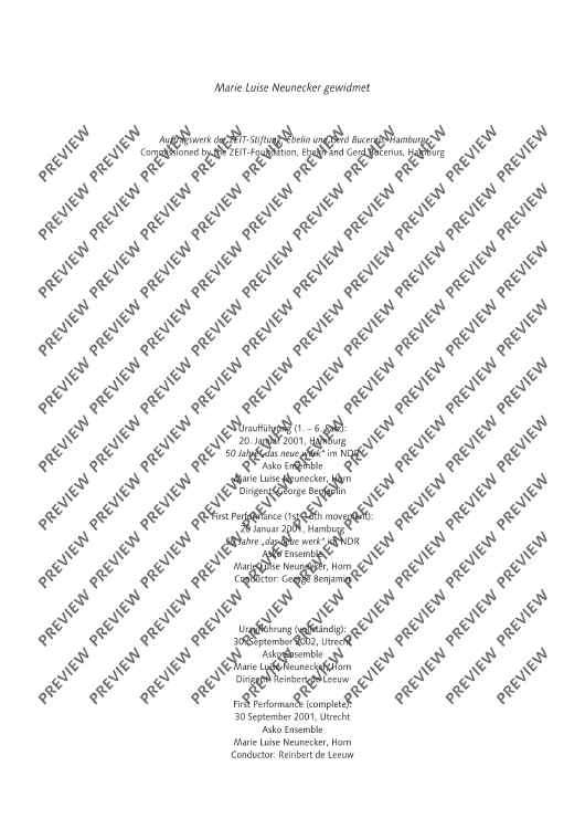 In his Hamburg Concerto Ligeti, inspired by the tonal possibilities of the natural horn, explores alternatives to the well-tempered tonal system. In the orchestra piece he juxtaposes the solo horn with four differently tuned natural horns in the chamber orchestra version.