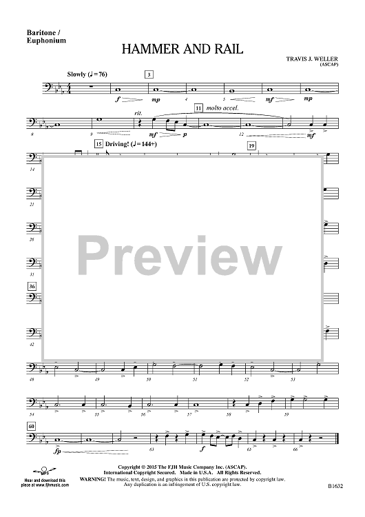 Digital Sheet Music for Hammer and Rail - Baritone/Euphonium by Travis J. Weller scored for Concert Band; id:454935
