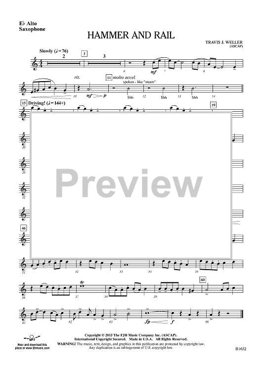Digital Sheet Music for Hammer and Rail - Eb Alto Sax by Travis J. Weller scored for Concert Band; id:454928