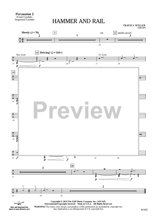 Digital Sheet Music for Hammer and Rail - Percussion 2 by Travis J. Weller scored for Concert Band; id:454941