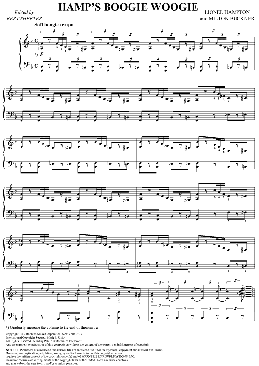 "Hamp's Boogie Woogie" Sheet Music by Lionel Hampton