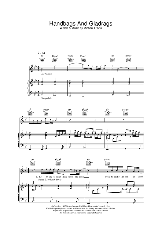 Digital Sheet Music for Handbags And Gladrags by Michael D'Abo, Stereophonics scored for Piano/Vocal/Chords; id:385398