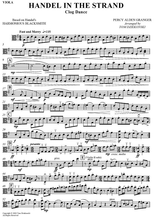 "Handel in the Strand - Viola" Sheet Music by Percy Grainger