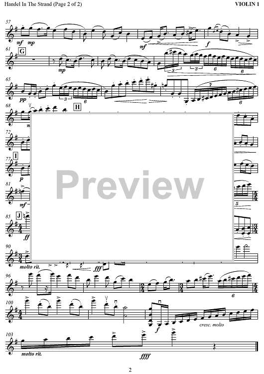 Digital Sheet Music for Handel in the Strand - Violin 1 by Percy Grainger, Tom Dziekonski scored for String Quartet; id:497204