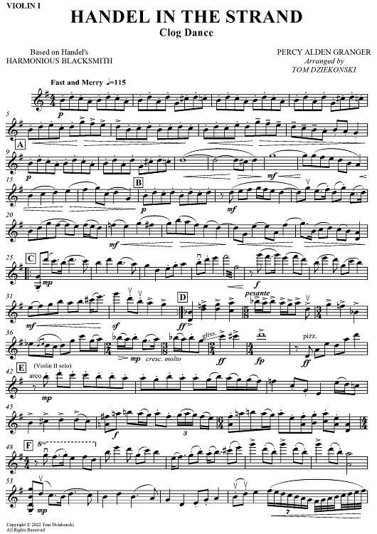 "Handel in the Strand - Violin 1" Sheet Music by Percy Grainger