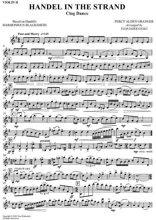 "Handel in the Strand - Violin 2" Sheet Music by Percy Grainger