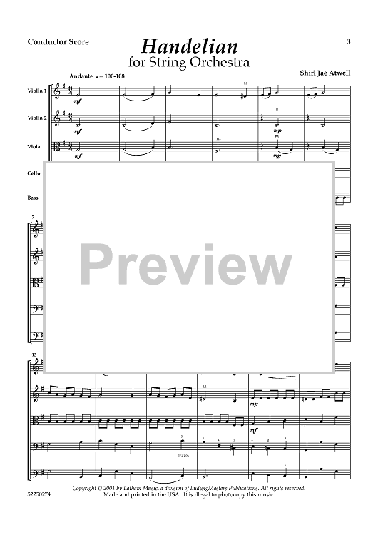 Digital Sheet Music for Handelian - Score by Shirl Jae Atwell scored for String Orchestra; id:458682