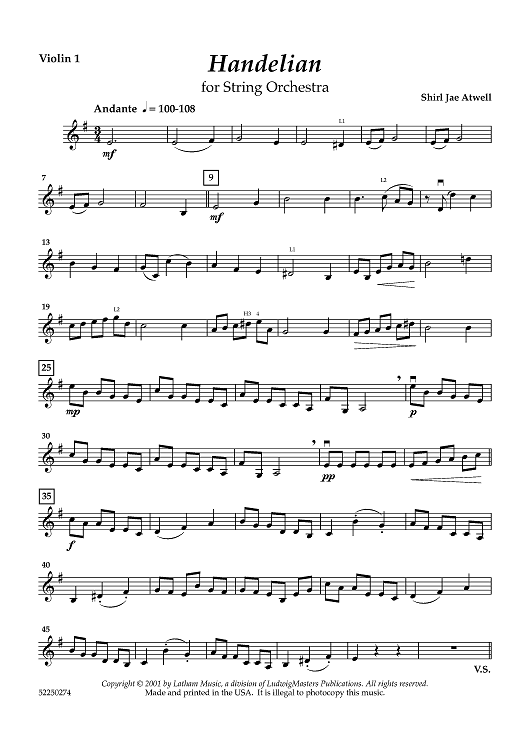 "Handelian - Violin 1" Sheet Music by Shirl Jae Atwell