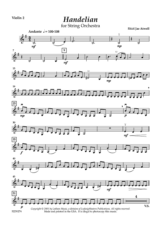 "Handelian - Violin 2" Sheet Music by Shirl Jae Atwell