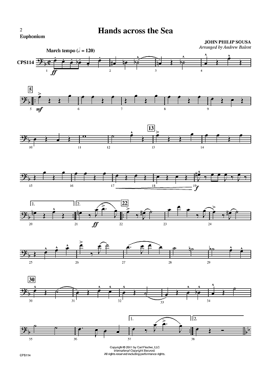 Digital Sheet Music for Hands Across The Sea (March) - Euphonium BC by John Philip Sousa, Andrew Balent scored for Concert Band; id:420148
